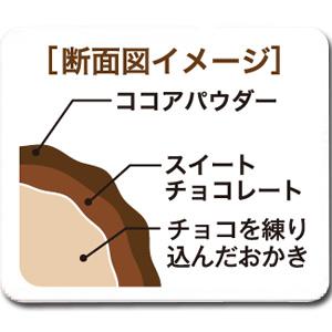 チョコ入りのお餅で作ったふんわりしたおかきをチョコレートでコーティングしています。